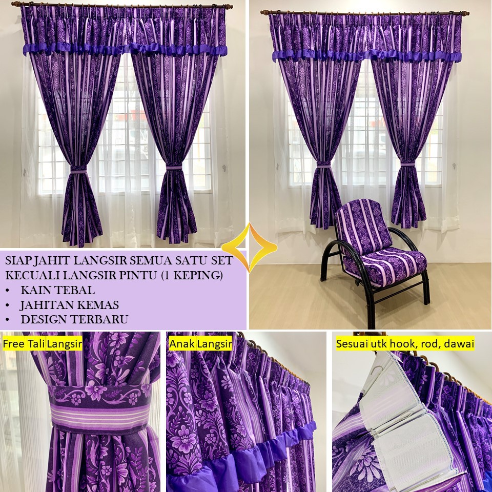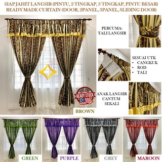 Siap Jahit Langsir Pintu 2 Tingkap 3 Tingkap Pintu Sliding Percuma Hook Langsir Lazada