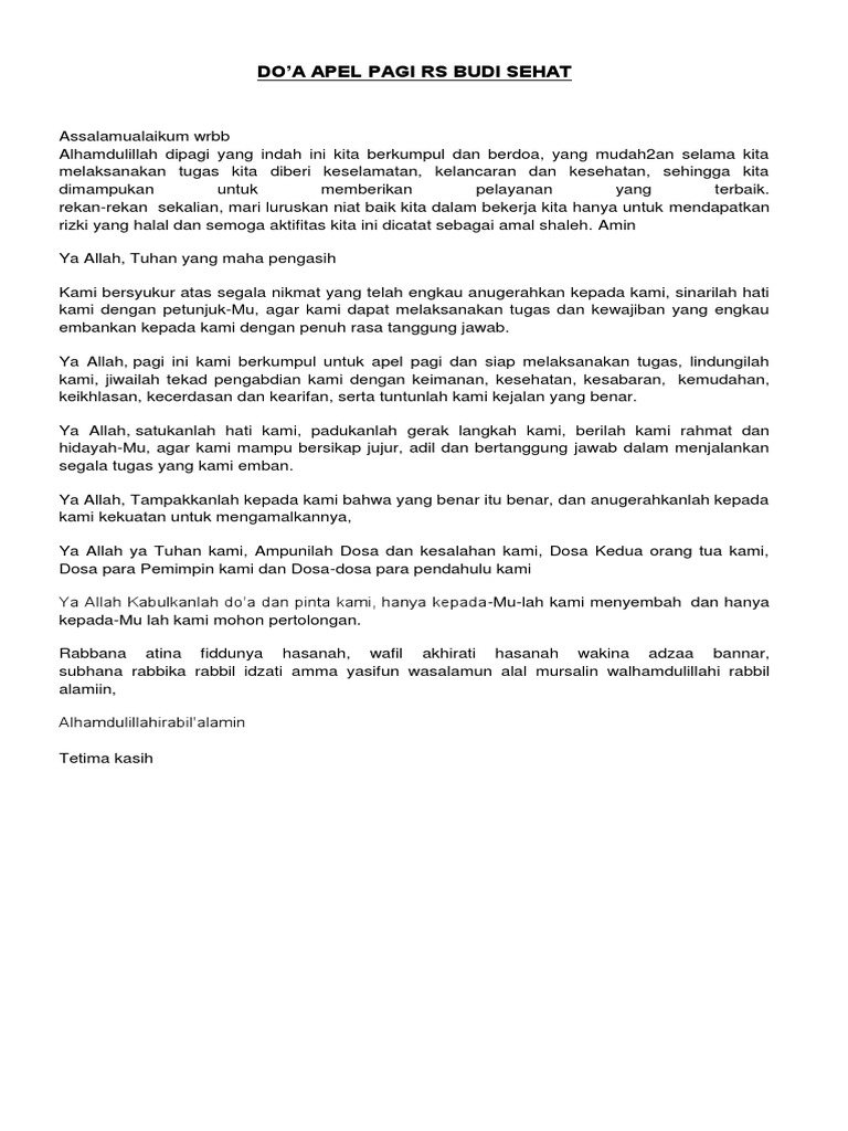 Contoh Do A Apel Pagi Sebelum Melaksanakan Tugas Di Kantor Dan Instansi Visiuniversal